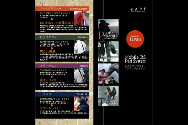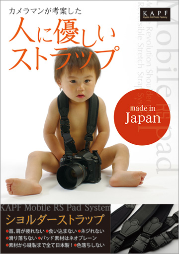 特に従来のショルダーパッドにはないソフトな感触、フィット感を経験した時、KAPFショルダーストラップの『体にやさしい』を実感する事が出来るでしょう。